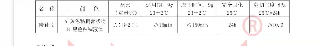 2 配膠 按規(guī)定進行配制,將膠置于潔凈、干燥、無油的容器中,混合均勻至顏色一致。配膠不宜過多,做到隨配隨用。夏季一次配膠量不應(yīng)超過 500 克。
